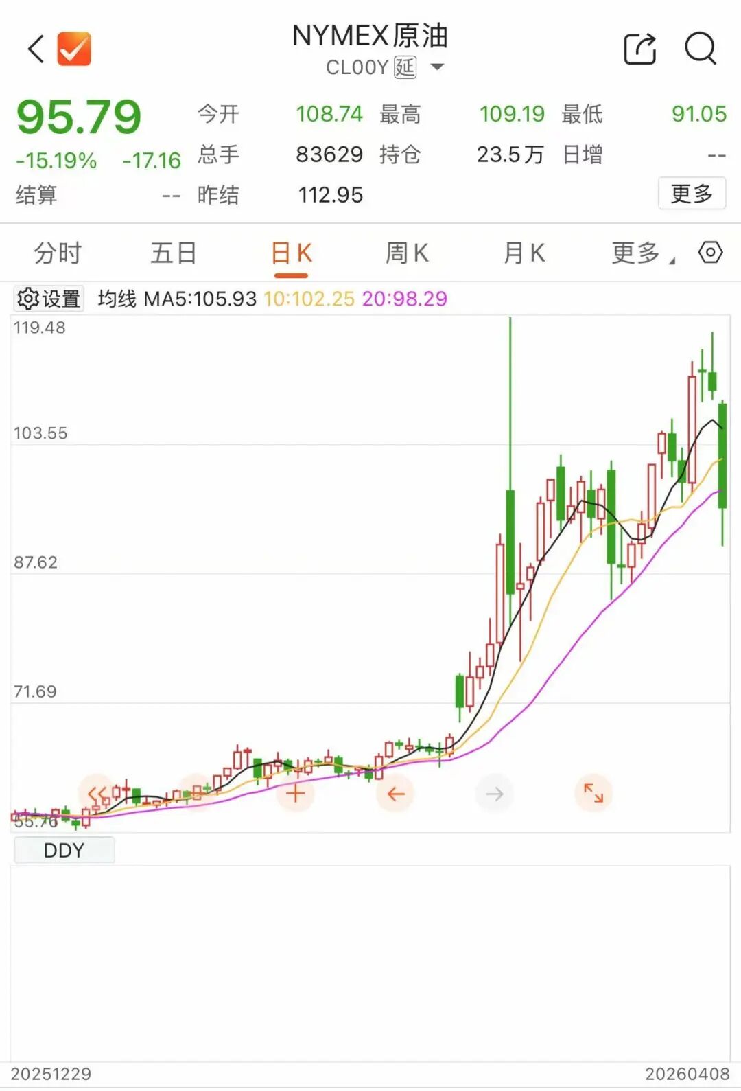 与此同时,国际油价迎来暴跌。WTI原油8日开盘大幅下挫,一度跌逾16%,最低下逼近91美元/桶。