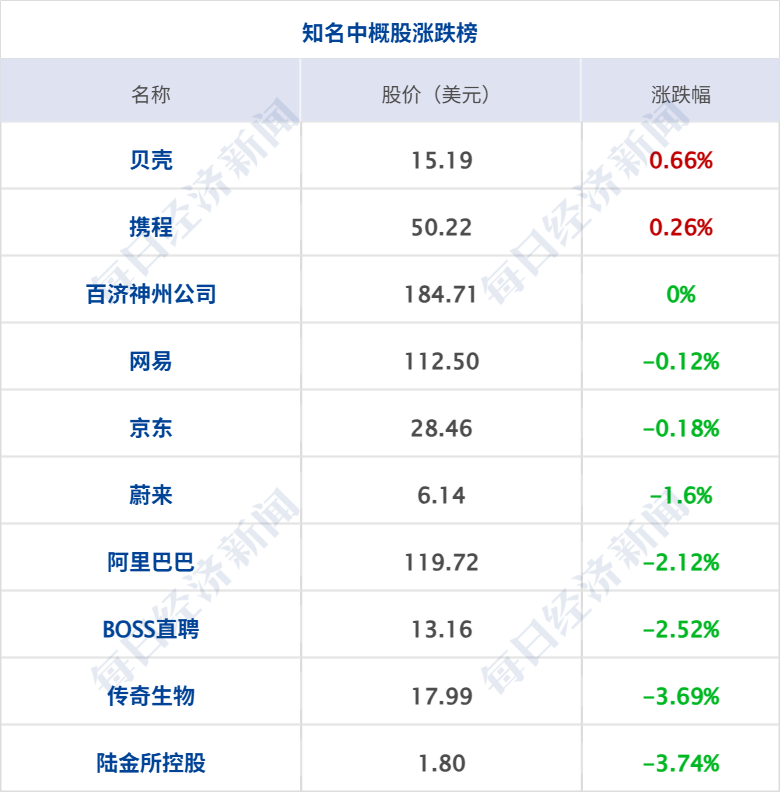 美股三大指数收盘涨跌不一,纳指涨0.1%,标普500指数涨0.08%,道指跌0.18%,其中,纳指和标普500指数录得四连涨;科技股涨跌互现,博通涨超6%,英特尔涨超4%,西部数据、谷歌涨超2%,苹果跌超2%,特斯拉、甲骨文、高通跌超1%。中概股多数下跌,纳斯达克中国金龙指数跌0.94%,阿特斯太阳能跌超5%,老虎证券、禾赛科技、阿里巴巴跌逾2%。