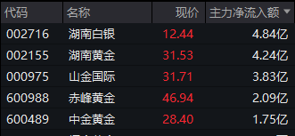 Wind实时监测数据显示,截至午间收盘,贵金属板块获得逾20亿元主力资金净流入,湖南黄金、山金国际、中金黄金等均获得超1亿元净流入。