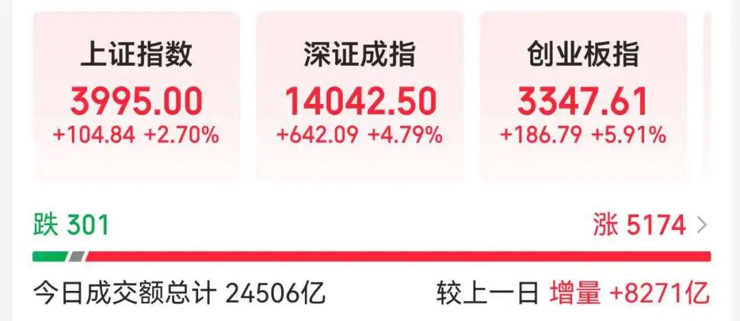 A股港股高开高走,沪指逼近4000点,双创指数涨超5%。今年表现最弱的港股科技指数,收盘也大涨5%。