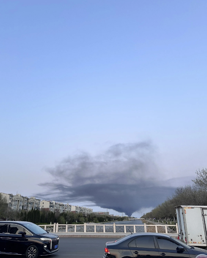 有消息人士表示,火情发生后,东营市区能够看到浓烟。