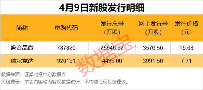 今日共有2只新股申购,分别为科创板的 盛合晶微、 北交所的 瑞尔竞达 。