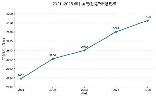 2025年,中国宠物产业规模突破3100亿元,犬猫粮市场900亿元。