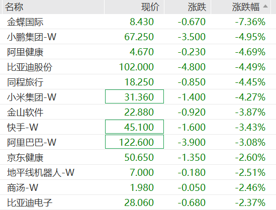 港股科网股多数下挫,截至15:40,金蝶国际跌超7%,小鹏跌近5%,阿里健康、比亚迪、同程旅行、小米跌超4%。AI应用热门股持续走高,迅策大涨超20%,智谱涨超8%,MINIMAX一度涨超7%。