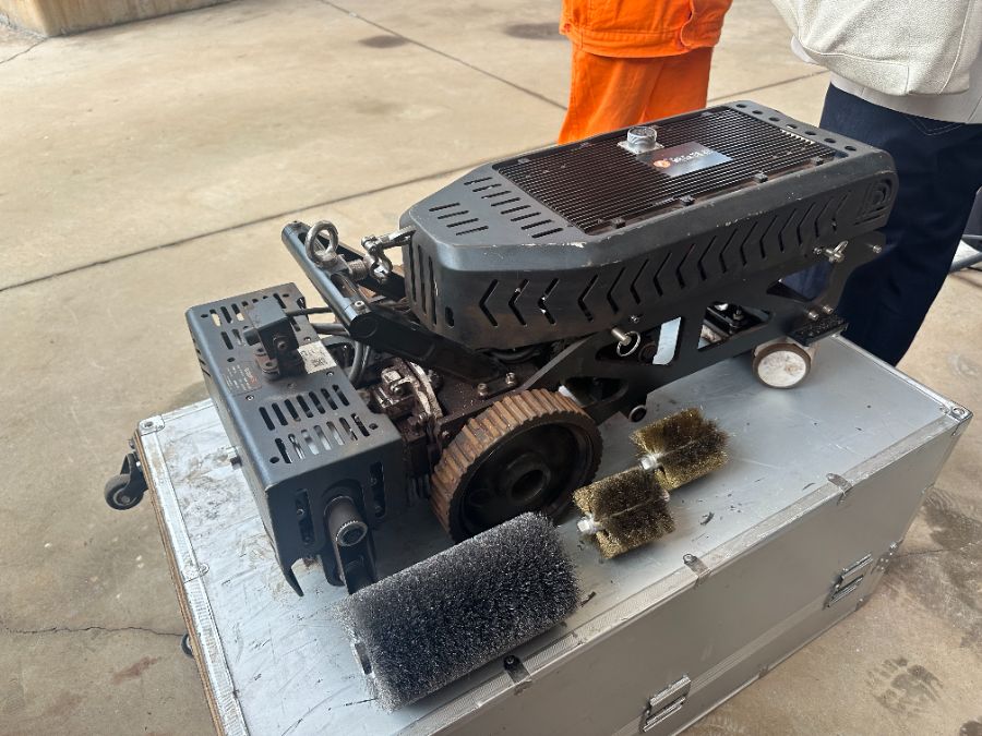 (浙江省特种设备科学研究院研发的爬壁打磨机器人,柳宁馨/摄)