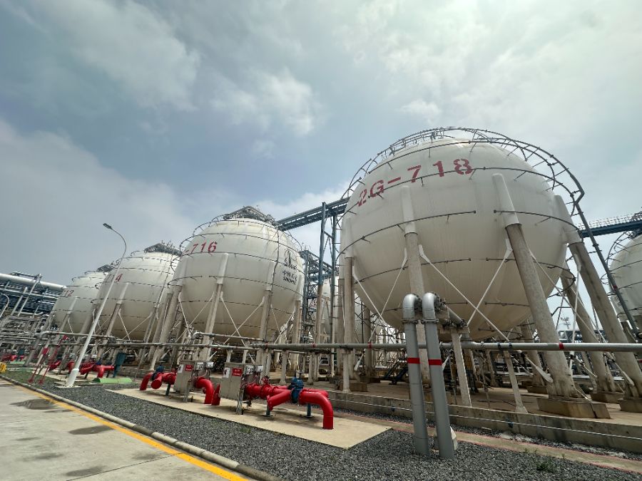 (镇海炼化基地二期现场球罐,柳宁馨/摄)