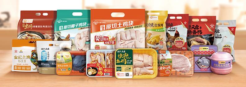 根据食材用途的不同,“中华土鸡”又可以分为田园土鸡、山林土鸡、炖汤土鸡、煲汤土鸡……这些产品在温氏的自有品牌和渠道定制中都能找到,均为气调包装鲜冻土鸡。