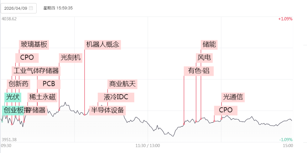 受中东局势反复及外围市场波动影响,亚太股市震荡分化,A股三大指数呈现集体回调走势,截止收盘,沪指跌0.72%,收3966.17点,创业板指跌0.73%。截止收盘,共1140只个股上涨,涨停个股61家,跌停13家,个股中位数跌幅约1.55%。日成交2.15万亿元(日减3033亿元)。算力硬件、CPO概念、PCB板块相对强势,证券IT、金融科技、酿酒医药等板块跌幅居前。
