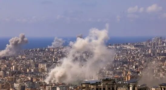 当地时间4月8日,黎巴嫩贝鲁特南部郊区遭以色列袭击后升起浓烟。