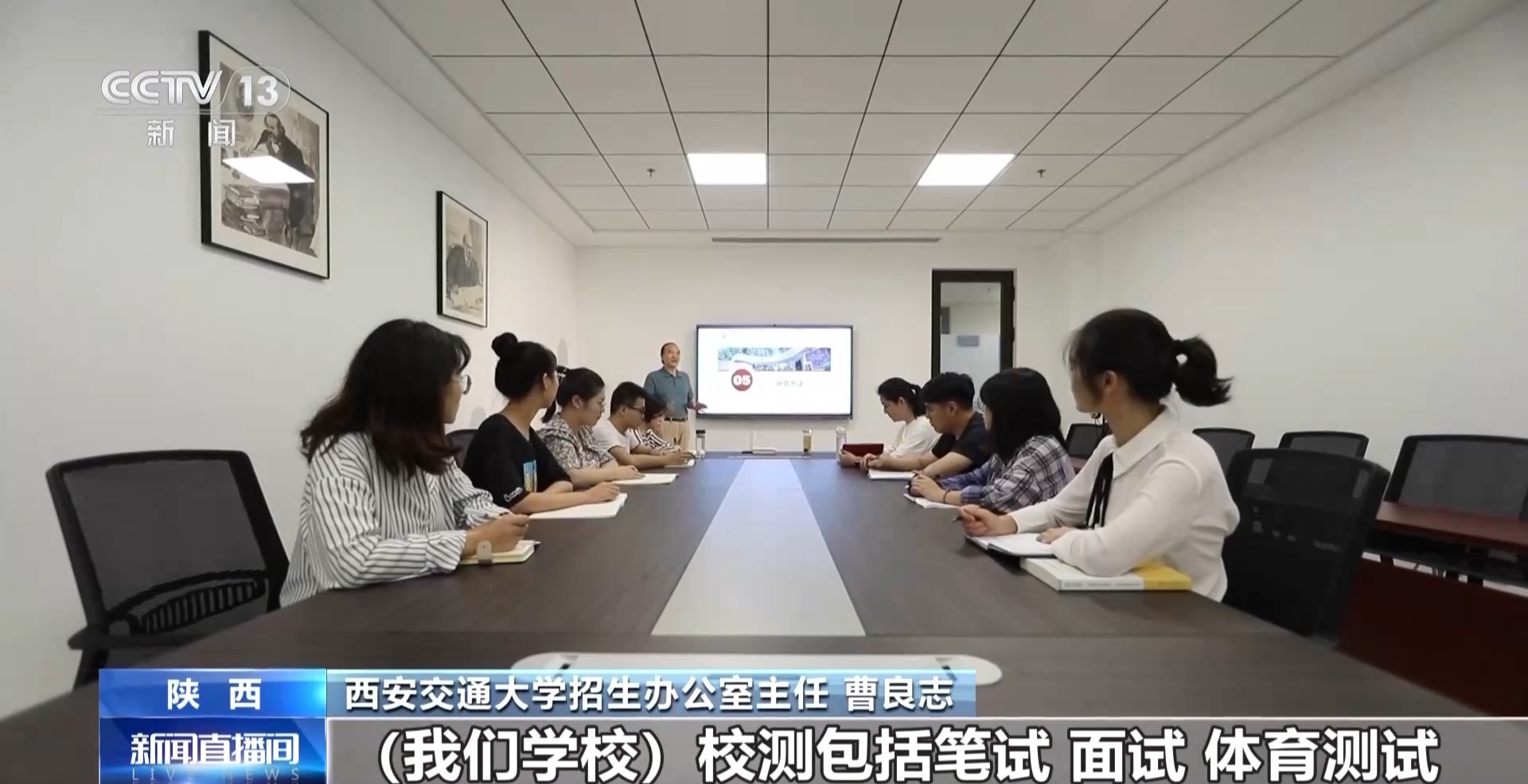 西安交通大学招生办公室主任 曹良志:我们学校校测包括笔试、面试、体育测试和综合素质的测试四个方面,考核学生对所报考专业的志向、兴趣和天赋。在面试环节,我们采取了“一隐名、五随机”的原则。“一隐名”就是隐去考生的姓名,“五随机”就是考生、评委、考场、时间以及题目都是随机的,而且全过程录像的。