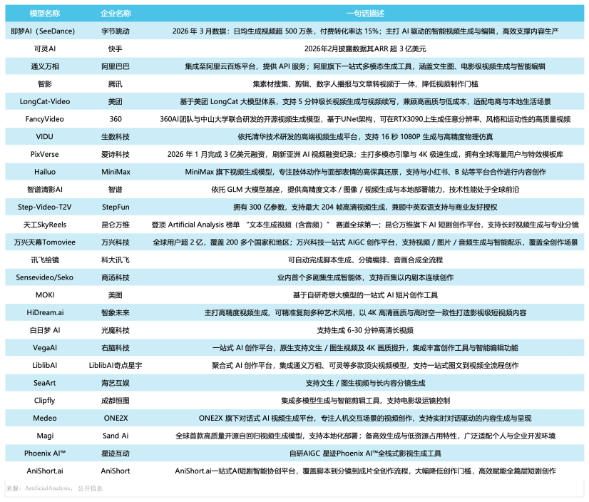 (国内主要AI 视频生成模型)