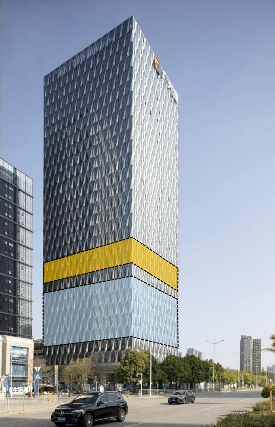 (深圳首批公立“商改医”项目,5~9层为深圳大学总医院口腔中心;11~12层为深圳市中医院针灸推拿中心。图源:深圳工务署)