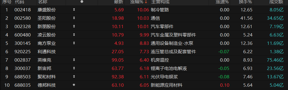 液冷概念持续走强,康盛股份、圣阳股份、新朋股份、凌云股份涨停。
