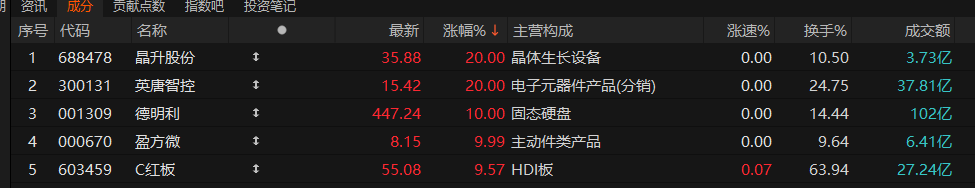 金针菇、英唐智控“20cm”涨停,德明利、盈方微涨停。