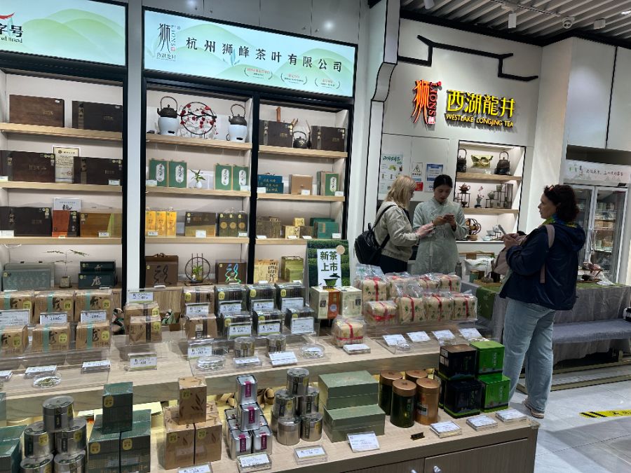 (杭州东站候车大厅的西湖龙井展销区,柳宁馨/摄)