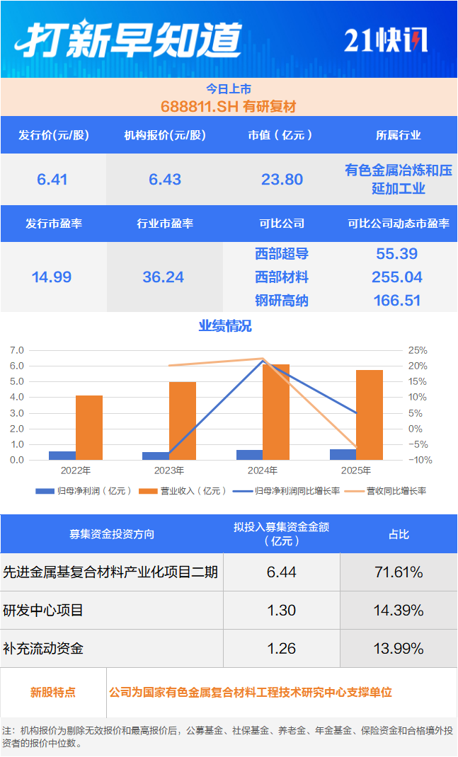 招股书显示,有研复材的控股股东“中国有研”及其前身“北京有色金属研究总院”是有色金属材料行业研发和产业培育的龙头单位,与国防军工领域相关集团建立了长期战略合作,具有较高的行业影响力。
