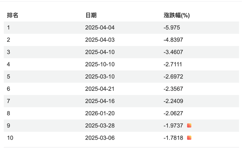 特朗普第二任期以来标普500指数前十大单日跌幅