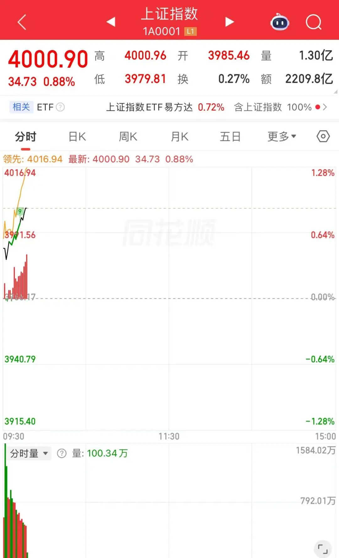 4月10日早盘,锂电产业链和券商股发力,上证指数盘中突破4000点。