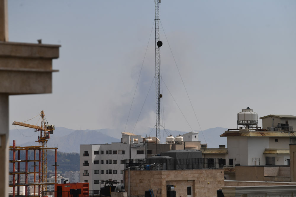 这是4月7日在伊朗首都德黑兰拍摄的空袭后的浓烟。新华社记者沙达提摄