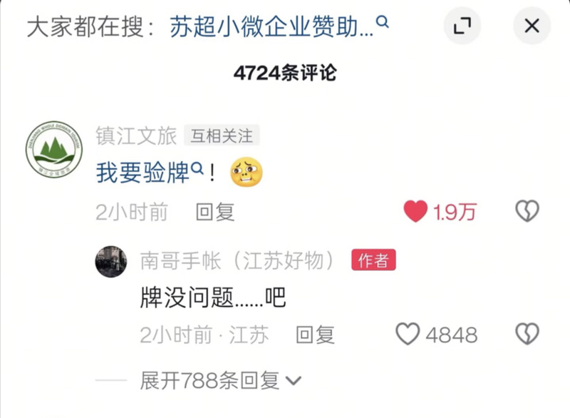 此前在小微企业赞助商摇号中,镇江与连云港颗粒无收。镇江文旅官方随即发布“我要验牌”的幽默回应,引爆网络。