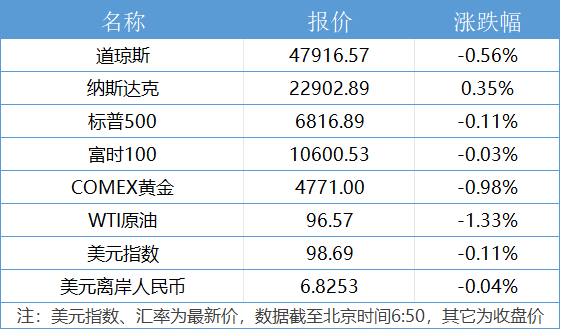 1、美股三大指数收盘涨跌不一,纳指涨0.35%并录得八连涨,标普500指数跌0.11%止步七连涨,道指跌0.56%。周线方面,纳指本周累涨4.68%,标普500指数累涨3.56%并创去年11月份以来最大单周涨幅,道指累涨3.14%。英特尔上涨1.07%,本周累涨24%,创2000年1月以来最大单周涨幅。