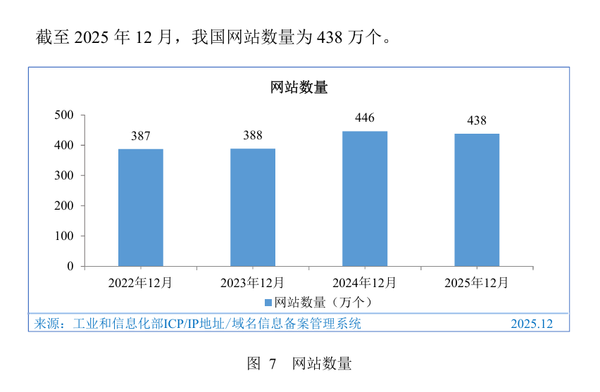 CNNIC的数据显示,截至2025年12月,我国网站数量为438万个。国内网站的巅峰是2017年533万个,后续就逐渐降低。在如今智能手机作为主要互联网产品形态的当下,老牌网站也算是“老古董”了。