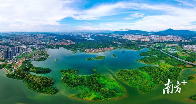 它的美,在于“一半山水一半城”的独特肌理。石马河一河两岸碧道水清岸绿,自北向南缓缓流过。坐拥多个森林公园,森林覆盖率达41.35%,绿地率54.43%,公园绿化服务半径覆盖率高达93.4%。推窗见绿不是奢望,而是日常。