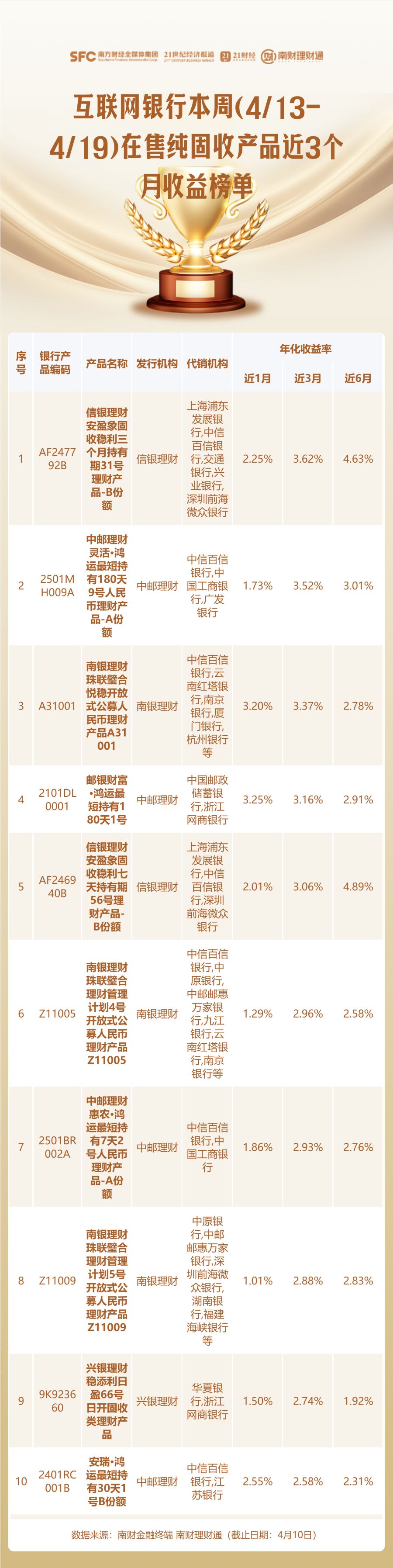 此外,南财理财通虽力求客观公正,但不对本评价榜信息的真实性、完整性和准确性作任何保证,排名信息仅供参考。