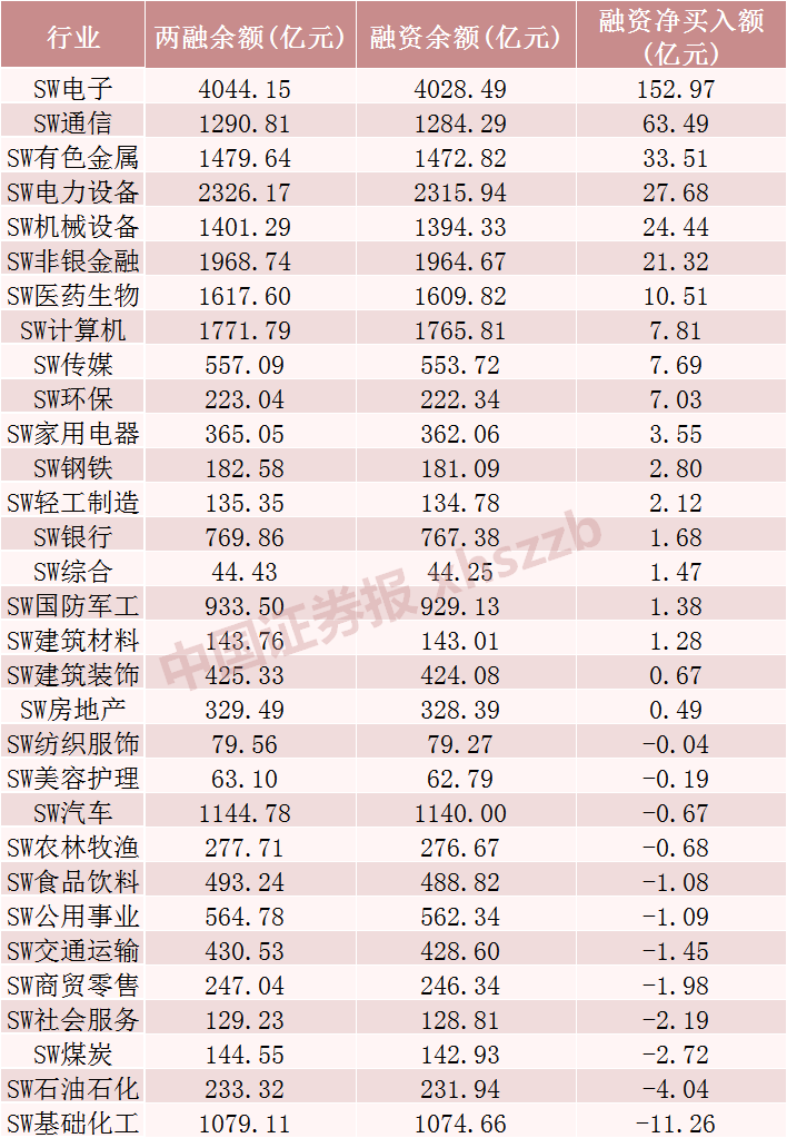 融资客加仓电子行业超150亿元