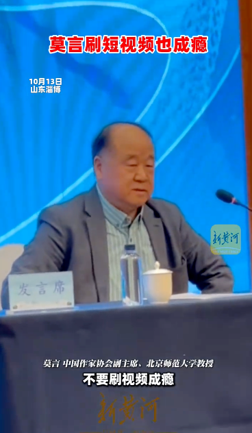 去年10月,莫言在山东淄博举行的一场座谈会上提到自己刷短视频上瘾的经历。