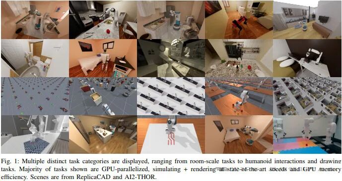 这带来的是,在ManiSkill3上渲染模拟,比其他平台运行速度快10-1000倍,GPU内存大幅优化,内存占用能少2-3倍。