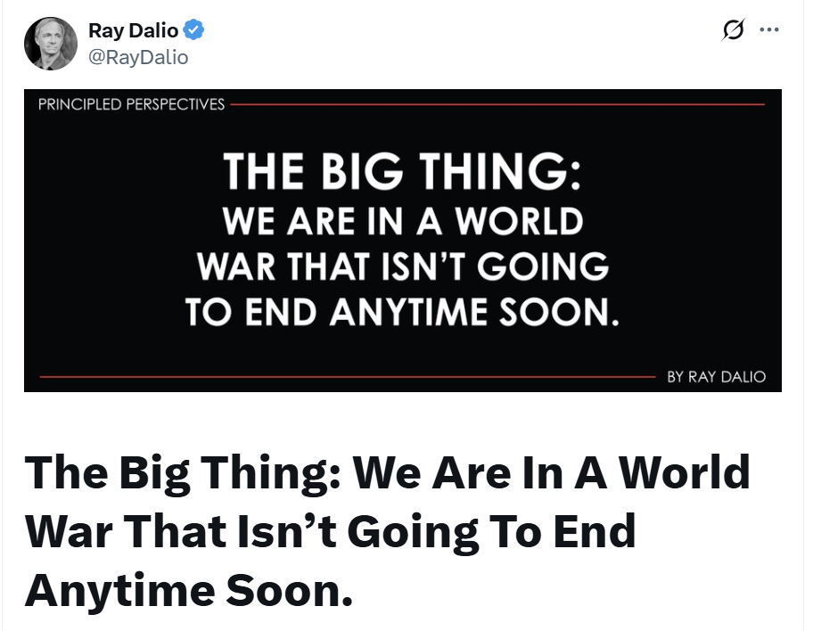 【导读】瑞·达利欧最新发文:战争短期内不会结束