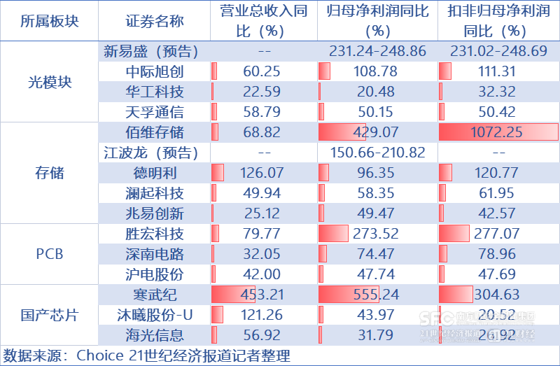 在光模块、存储、PCB、国产芯片等核心领域,哪些企业充分享受到了时代的红利,哪些公司又亟待与时代“接轨”?