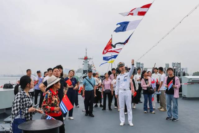 4.参观期间,请勿倚靠栏杆、坐靠码头设施,不得随意触碰舰艇设备。