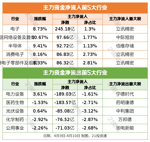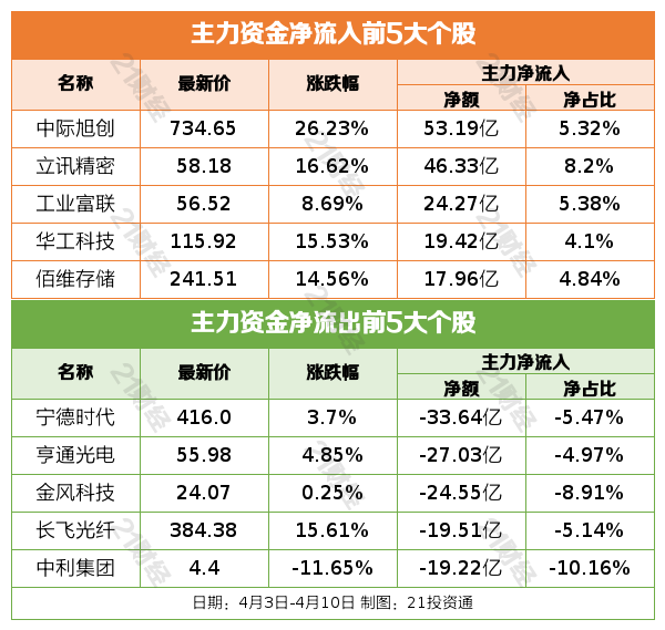 过去一周(4月7日—4月10日),三大股指集体上涨。截至4月10日收盘,上证指数周涨幅2.74%,报3986.22点;深证成指周涨幅7.16%,报14309.47点;创业板指周涨幅9.50%,报3448.79点。