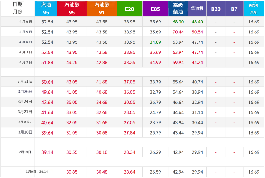 罗玲珑向21世纪经济报道记者展示的油价走势图显示,今年2月之前,泰国汽油、柴油价格大多稳定在40泰铢/升,但3月下旬,价格曲线陡然向上,短短半个月内,汽油和柴油价格就上涨了约30%和62.6%。