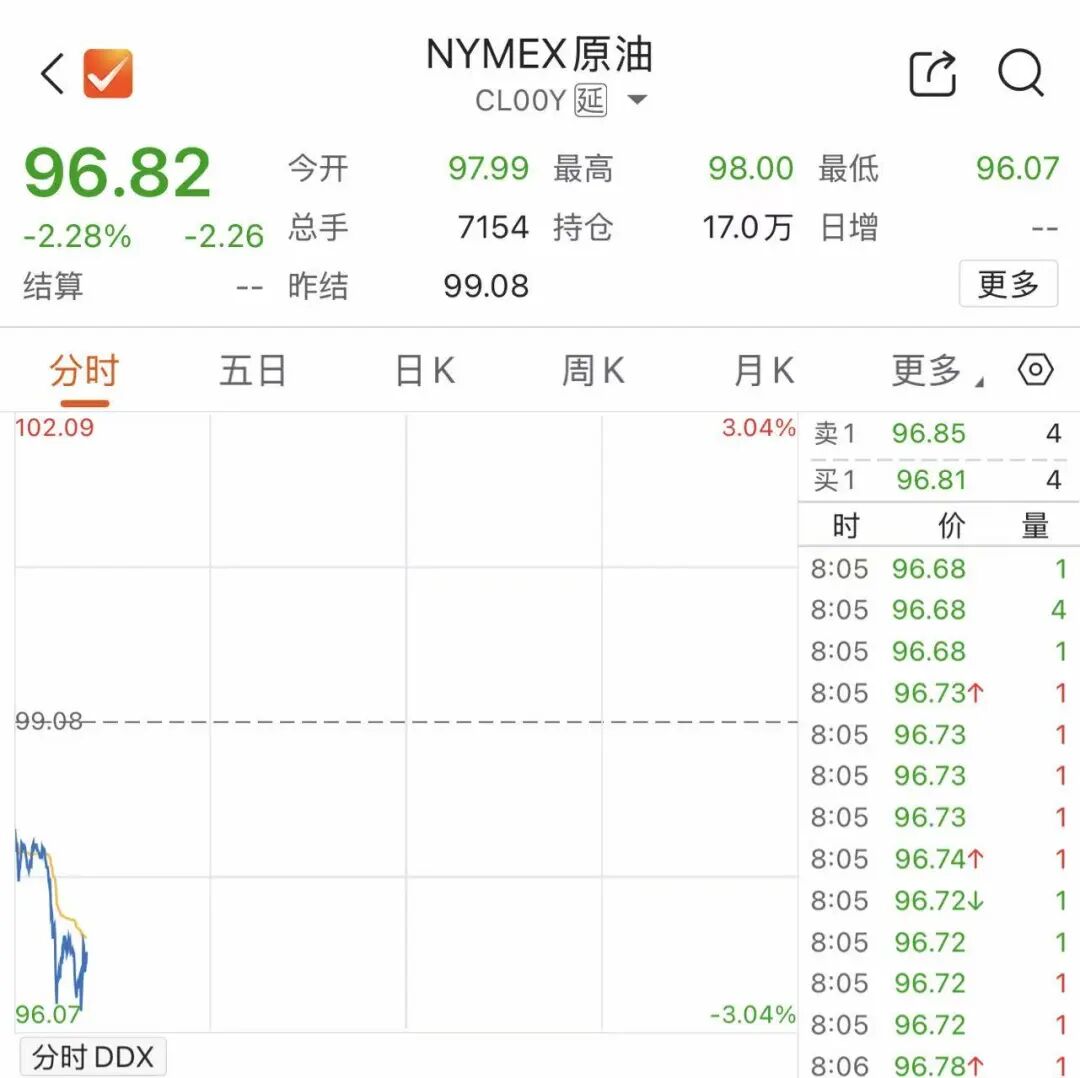 国际油价开盘跳水,WTI原油盘中跌超2%。