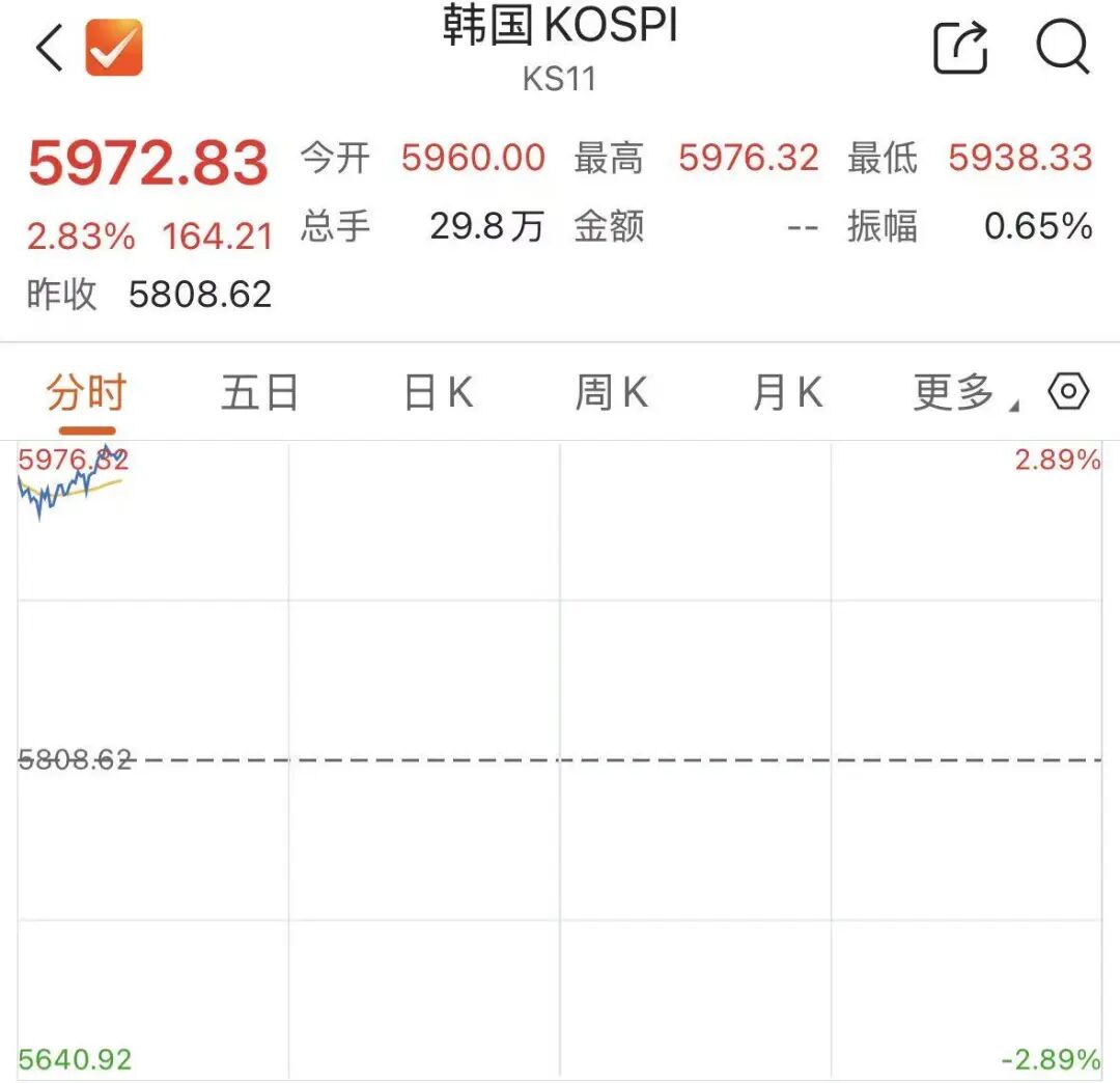 中东局势持续扰动全球金融市场。北京时间4月14日,日韩股市高开,日经225指数涨1.51%;韩国综合指数(KOSPI)涨2.49%。随后日韩股市高开高走, 日经225指数涨幅扩大至2.44%,最新报57879.84点, 韩国综合指数 (KOSPI) 涨幅扩大至 2.83%,最新报5972.83点。