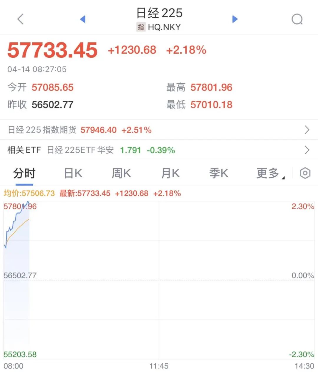 此外,受芯片股带动,日经225指数涨幅扩大至2%,最新报57733.45点。