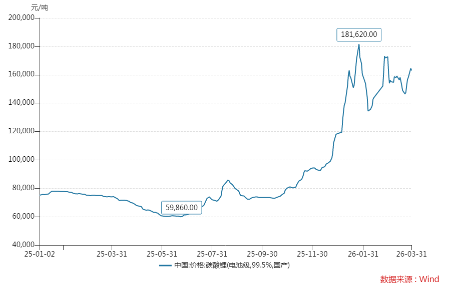 今年则明显不同,国内锂盐产品自2025年四季度上涨后,一直维持在13万元/吨以上的相对高位。