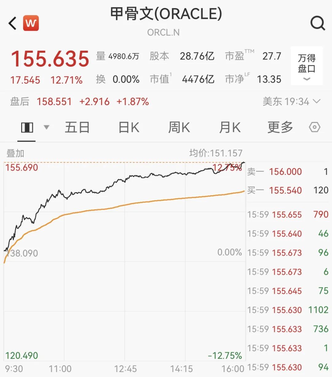 科技板块强势走高 甲骨文飙升超12%