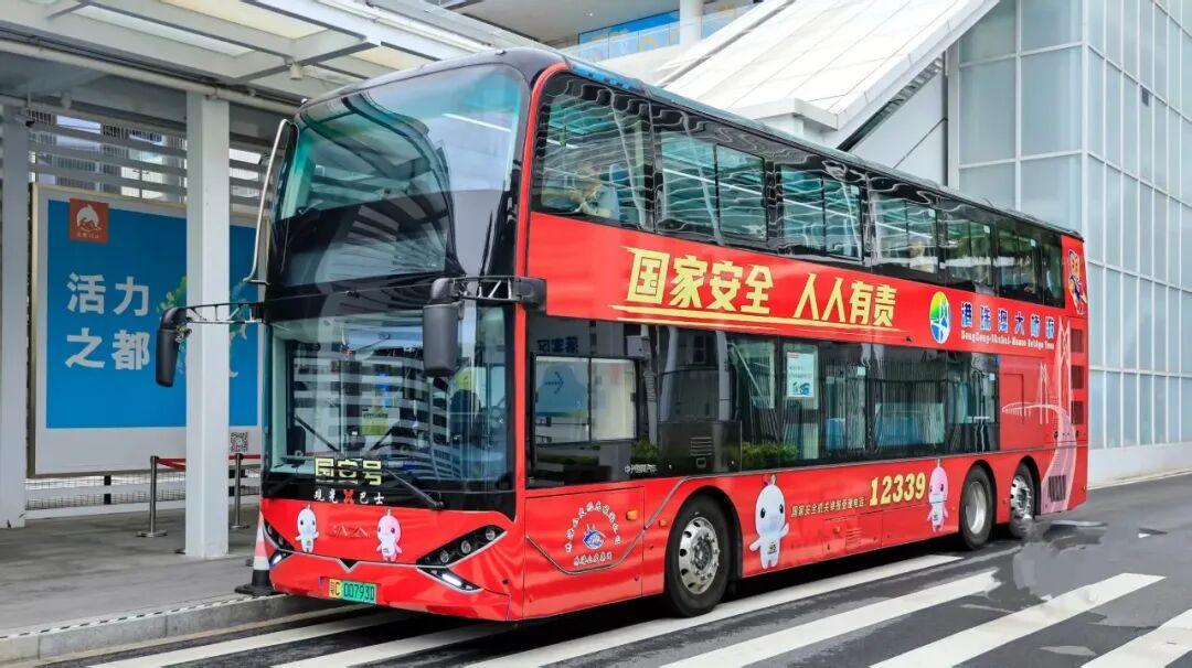 “国安号”港珠澳大桥游双层巴士