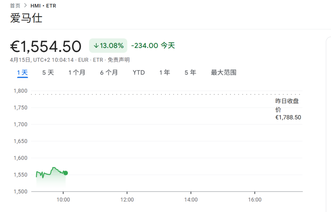 4月15日下午,欧洲股市开盘,奢侈品股大幅下挫。由于中东冲突冲击奢侈品消费,开云集团和爱马仕公布的第一季度业绩令投资者失望。