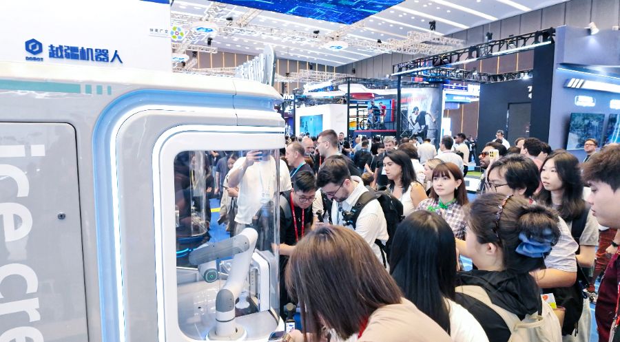 “无论是抓取不同形状的冰淇淋杯,还是精准定位人体穴位,它都能像一位训练有素的店员一样边看边做,无需预设复杂代码。”越疆机器人现场工作人员介绍。