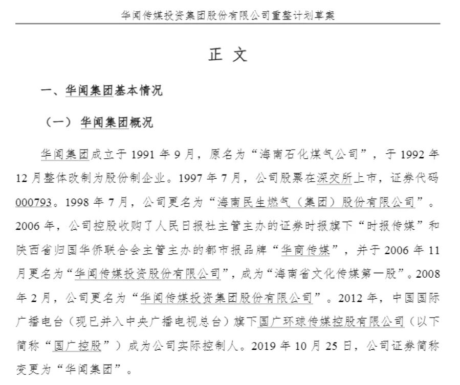 如今重整计划(草案)出炉,华闻集团能否依托海南国资重获新生?