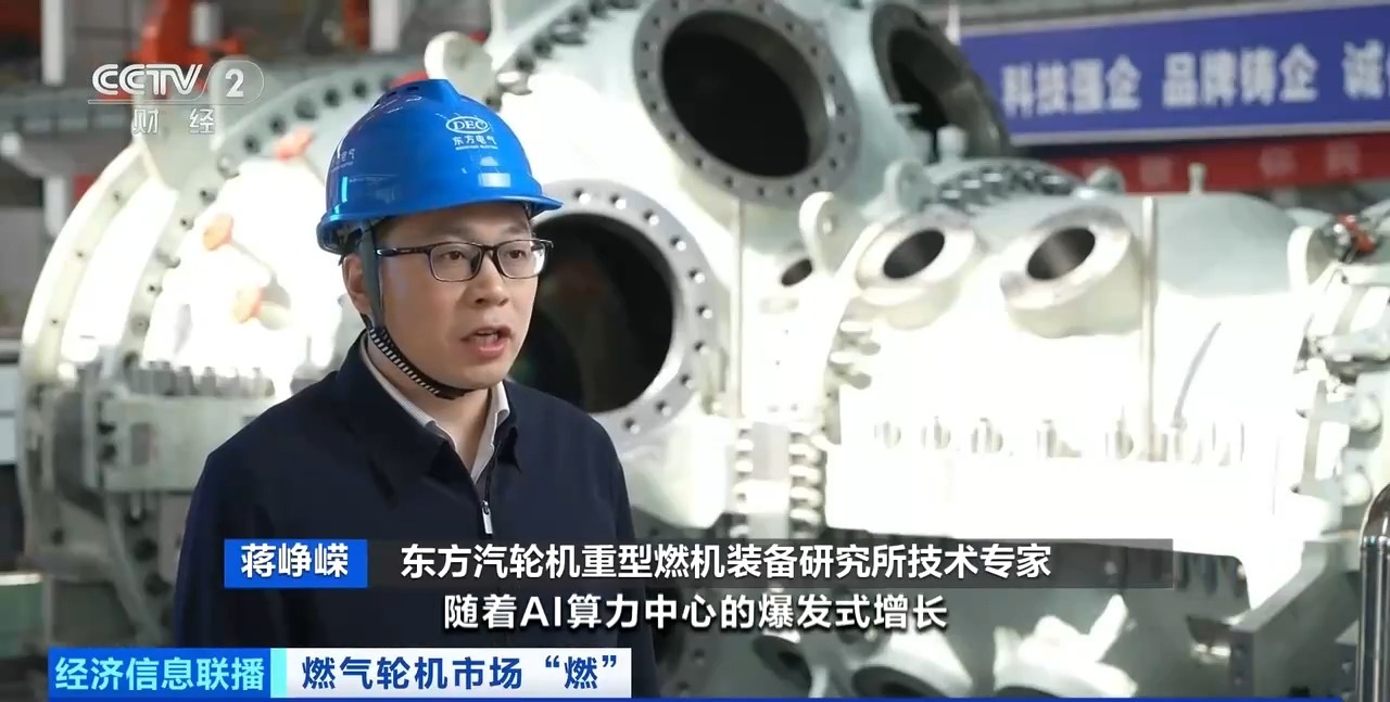 东方汽轮机重型燃机装备研究所技术专家 蒋峥嵘:随着AI算力中心的爆发式增长,它的快速启停,低排放以及长时间稳定运行等优势,正好匹配了算力对供电品质的严苛要求。