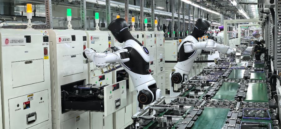 4月14日,龙旗科技南昌平板制造工厂。四台智元精灵G2机器人站在MMIT测试工站前,完成流水线取料、高精度放置、治具对接、成品回流全闭环操作——循环往复,全程无剪辑、无预演,持续了8个小时。