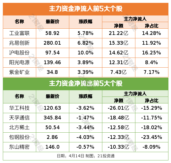 4月14日,市场震荡反弹,创业板指涨超2%,续创阶段新高,沪指涨近1%重返4000点,深成指涨超1.5%。截至收盘,沪指涨0.95%,深成指涨1.61%,创业板指涨2.36%。沪深两市成交额2.38万亿,较上一个交易日放量2334亿。