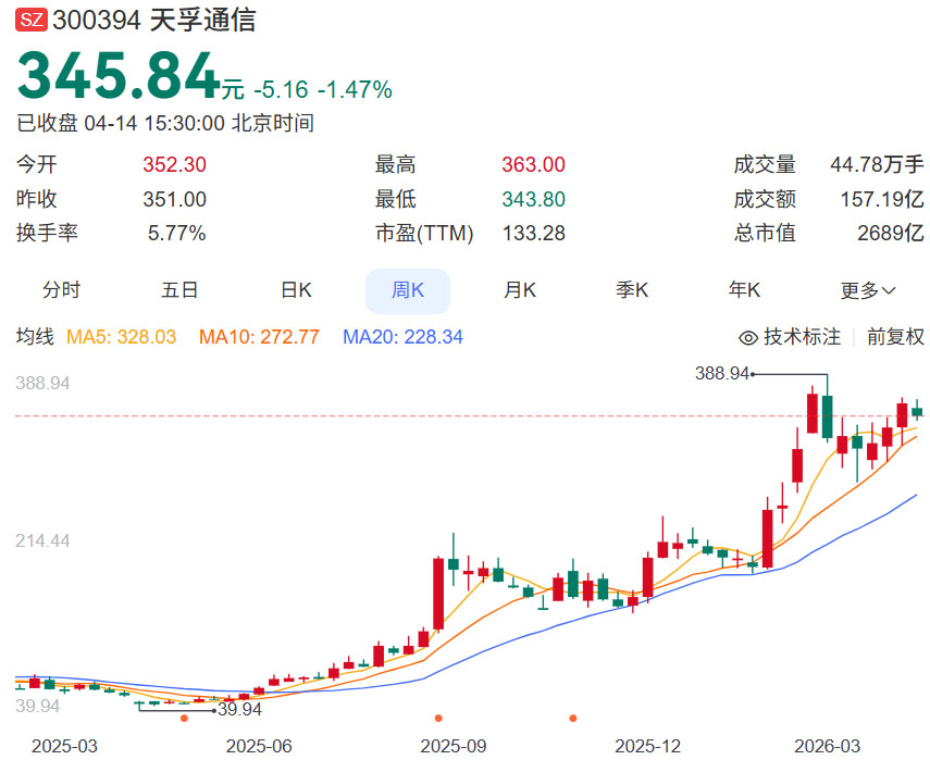 这家光通信龙头,一年来成为市场宠儿。截至4月14日,其市值超过2600亿元,相较12个月前,大涨2300亿元。