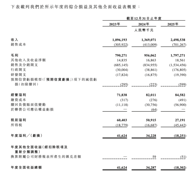 财务表现呈现“增收不增利”。2023至2025年,营收从10.96亿元增至24.99亿元,2025年同比增长82.5%;归母净利润则由正转负,2025年亏损1825.1万元。
